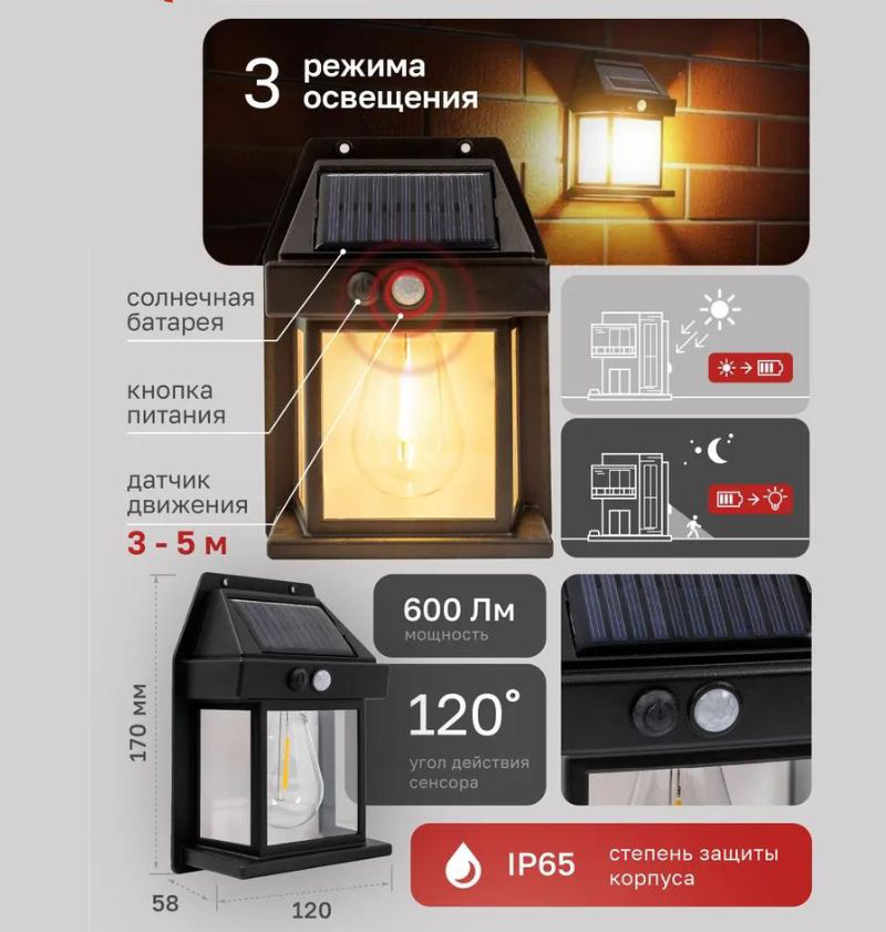 Солнечная панель позволит светильнику заряжаться днем и работать ночью, экономя ваше электричество. Кроме того, дачный светильник станет стильным декором для вашего участка, добавляя уникальный шарм и привлекательность.